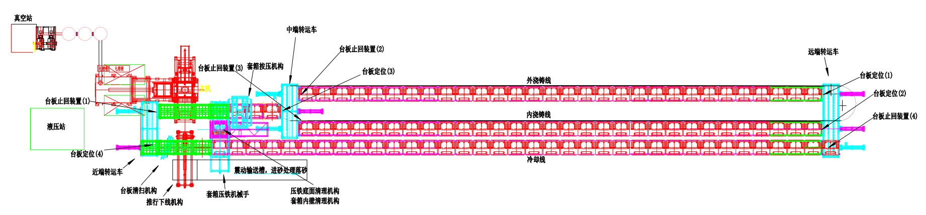 The main features of the BLE vacuum static pressure horizontal molding production line are: